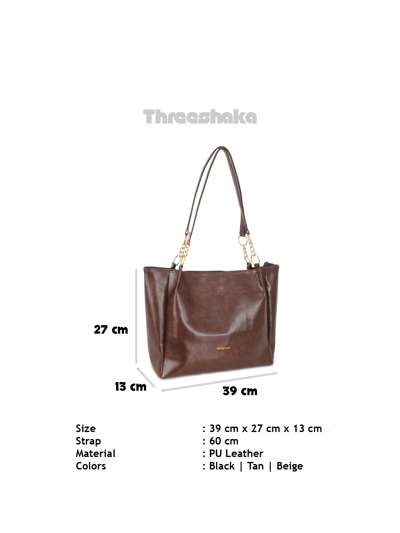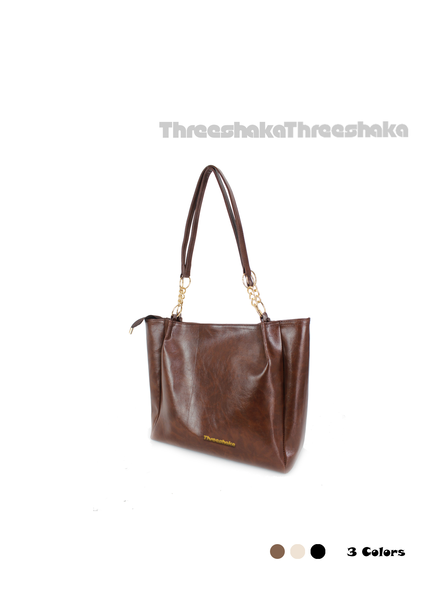 Threeshaka Tote Bag hadir dengan desain elegan, ukuran besar yang fungsional, dan bahan PU Leather berkualitas.